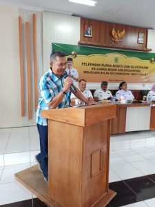 Dalam sambutanya, Kepala Dinas Kopdagperin menyampaikan penghargaan dan ucapan terima kasih kepada H. Nono Supriatna, S.Sos., M.Si. dan 2 pegawai yang mengalami alih tugas.